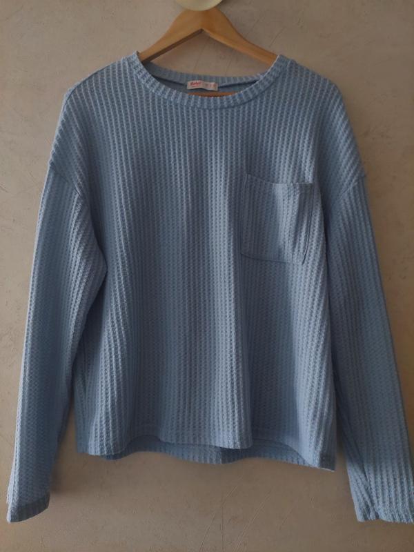 Очень приятный на ощупь, нежного голубого цвета, текстура вафельки