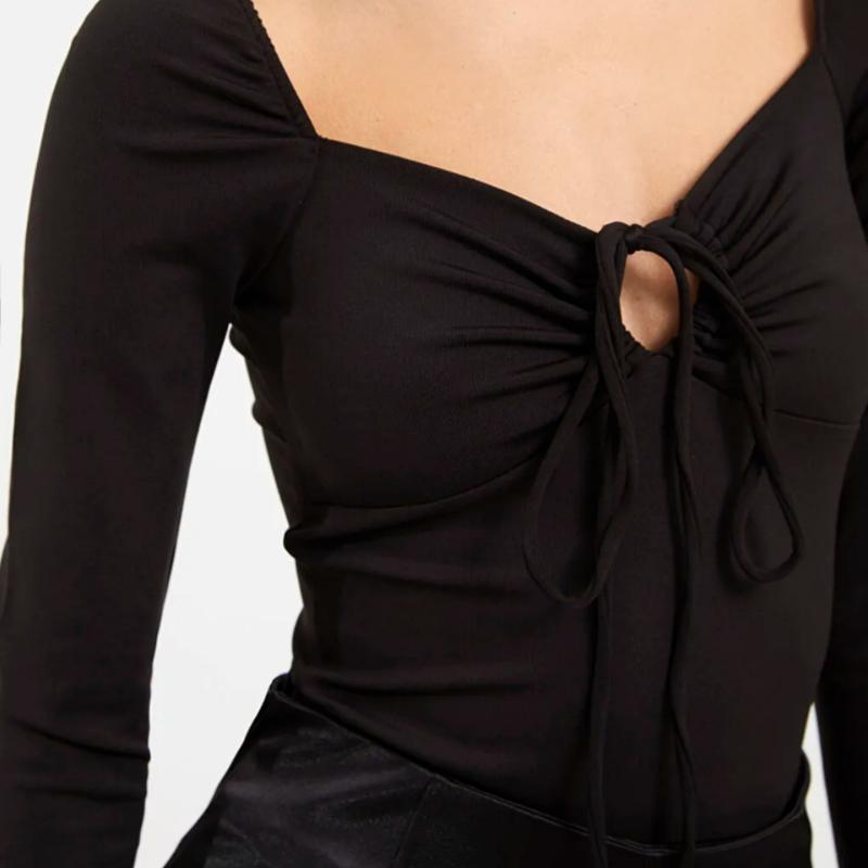 Красивая кофтина с длинным рукавом.материал.интересный фасон.матузочкой можно регулировать вырез..совально выглядит.материал тянется, но держит форму. грудь 39 рукав 57 длина -54