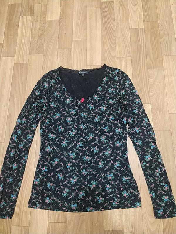 Очень приятный на ощупь лонгслив черный с цветочным принтом