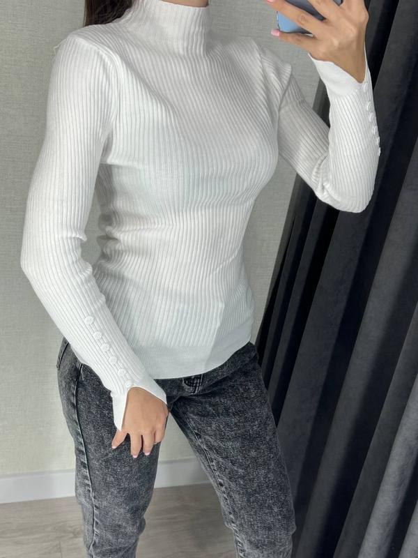 Гольф-лонгслив Фабричный Китай Арт. 013 Отличное качество, мягкое приятное на ощупь Машинная вязка, рубчик Цвет: белый, малахитовый, мокко, черный Цена 480 грн ОГ- 40 см, тянется до 60 см Длина 60 см Рукав от плеча 62 см 94
