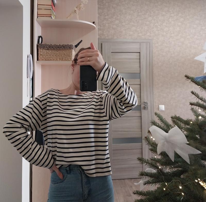 Лонгслив оверсайз в полоску (черная/молочная). Замеры: длинна. 47см., довж.рукава 56 см., плечі 46-47 см., пог. 52 см. Ткань трикотаж, но достаточно плотный, не тоненький. В идеальном состоянии, без дефектов! Цена 200 грн. Торгу не имеет!