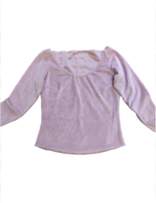 очень приятная к телу, замеры: длина 52 см, длина рукава 66см, пог 45 см, талия 38 см, низ 43 см.