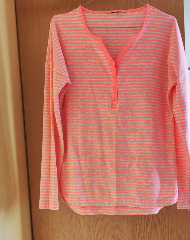 Яркий полосатый Лонг Германия Размер не указан, около 12/14 (веруйте замеры ) Длина - 61 по переду/65 сзади, ПОГ -46, рукав от горловины- 66-67 Состав замечательный 69% котон 26% полиэстр 5% еластан Состояние идеал
