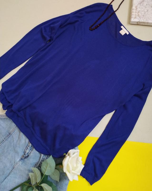 Кофта,лонгслив оверсайз,свободного кроя, ярко - синего цвета,вязка, тянется, в идеальном состоянии Размер S,подходит на М Длина-66/75см( сзади длиннее) Рукав(от горловины)- 73см Пог- 56 см
