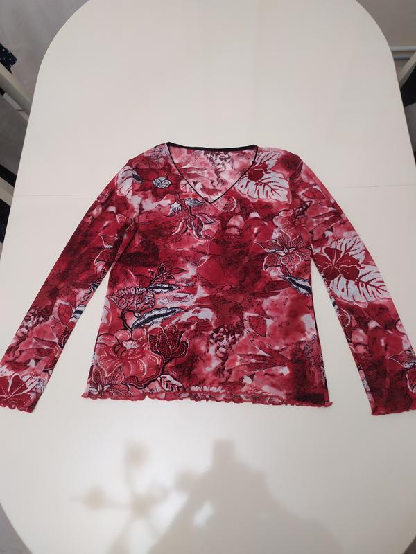 Стан новой, тянется сильно, не мнется. Сочные,освежающие цвета. Замеры в спокойном состоянии: плечи 39 см, от подмышки до подмышки 47 см, прямая, потянется на большее. Длина общая 57 см.А глубина выреза 15 см.