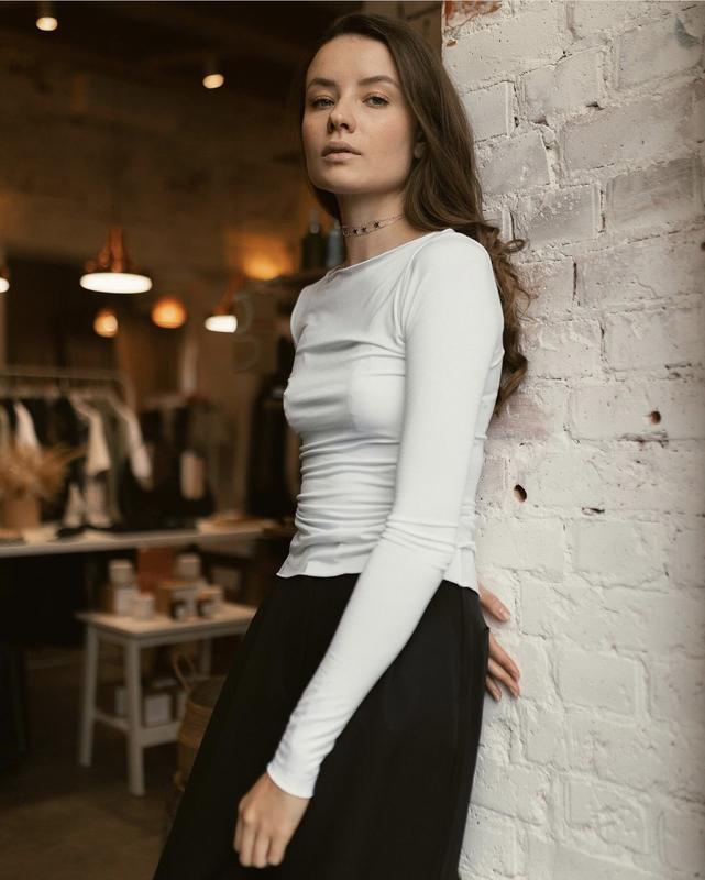 Качественная, очень приятная к телу ткань. Идеальная посадка, удлиненный рукав. Бренд указан для быстрого поиска