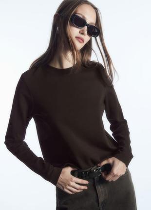 Лонгслів COS В НАЯВНОСТІ Розмір S S - ПОГ 46 см, Довжина 57 см Колір темно коричневий (шоколад) Колір вірно переданий на каталожних фото 100% органічна бавовна щільна Неперевершені лонгсліви COS! Вони дійсно самі найкращі! Дуже гарна якість, дуже комфортні, дуже стильно виглядають! Любий колір може бути базою!