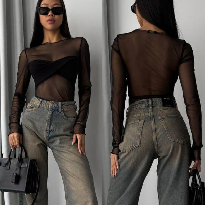 Лонгслив ▫️Мод 1109 ▫️Ткань - стрейч сетка + вискоза ▫️Размеры - 42-46 ▫️Цвета - черный ▫️Цена - 530 грн 🔝Они идеальны 😍 Тренд этого сезона - топы сетка с имитацией лифа, дополнят любой ваш образ 🔥 Ткань очень приятная к телу💎
