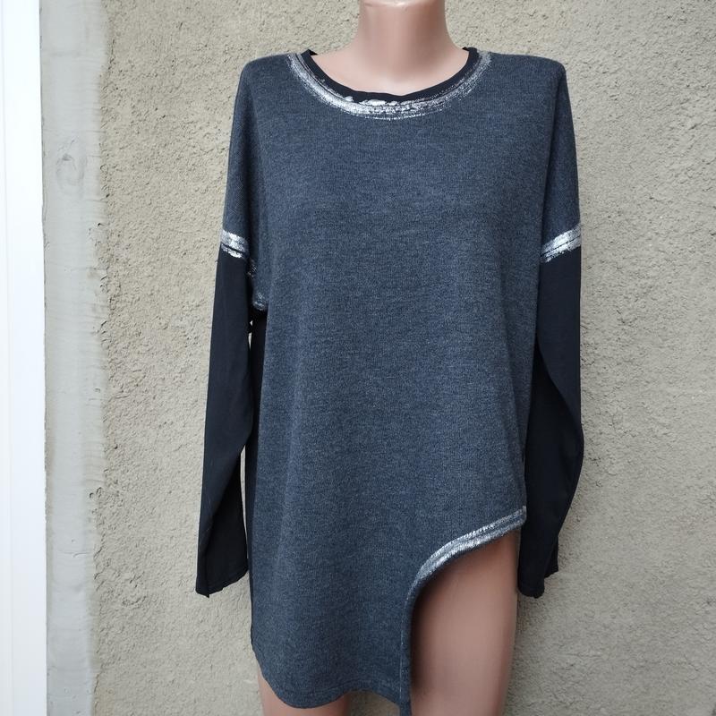 Интересная итальянская овер кофточка/лонгслив. 100%- бавовна. Тонкий трикотаж, как для футболок. Б/в идеальном состоянии. цвет ровный, не выгоревший. Подойдет на размер М-L. Замеры: Плечо-26 ПОГ-63 НОН-57 Длина рукава -44 Ширина рукава сверху -18 снизу -11,5 Длина по спинке -72/55 см.