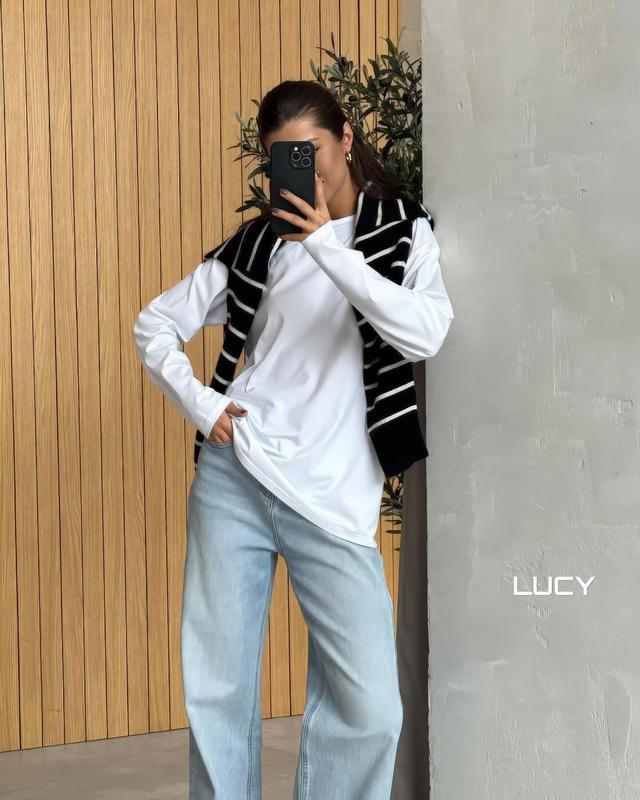 ☺️ Новинка! Лонгслів Мод. 533. (12) ▫️ Тканина: двонитка Туреччина ▫️ Колір: чорний, білий, сірий, графіт, св.бежевий ▫️ Розмір: 42-44, 44-46 Базовий лонгслів у найходовіших кольорах. Хороша, якісна тканина та відмінна якість пошиття. ➖ Заміри: ОГ 112/116 см Довжина рукава від шиї 73 см Довжина по спинці 67 см