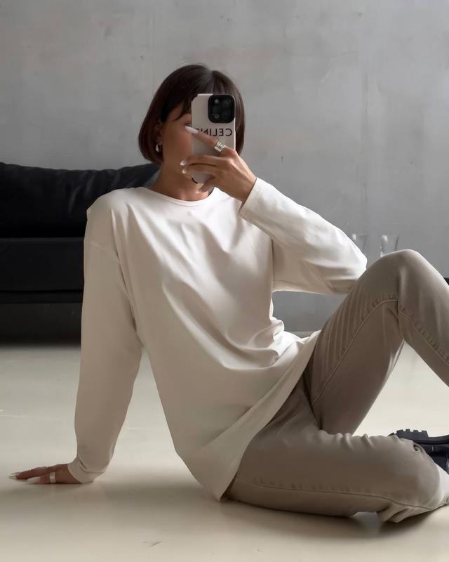 Лонгслив Ткань: двухнитка Турция Цвет: черный, белый, серый, графит, св.бежевый Размер: 42-44, 44-46 Цена: 399 грн Базовый лонгслив в самых походных цветах. Хорошая, качественная ткань и отличное качество пошива. Замеры: ОГ 112/116 см Длина рукава от шеи 73 см Длина по спинке 67 см