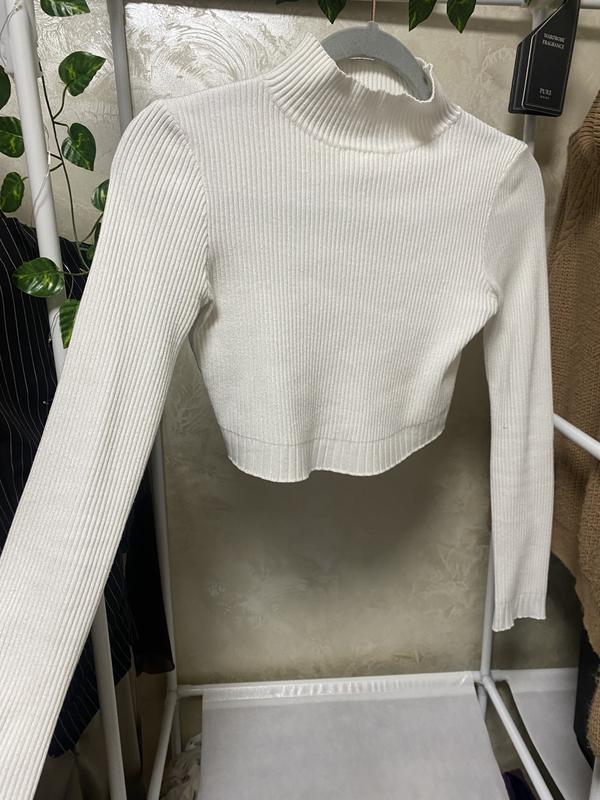 белый лонгслив, кофта под горло, ткань в рубчик