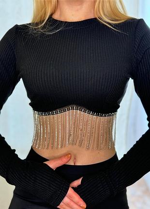Тканина трикотаж рубчик Декор бахрома из страз Хорошо облегает не поднимается по заду фиксация на резинке Состояние новое.Размеры в наличии ХС, С,М,Л Цена 350