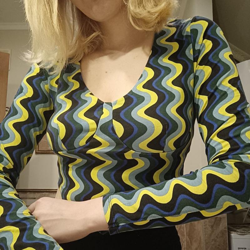 сміливий, стильний топ у хвилясту смужку розмір М довгий рукав, овальний виріз