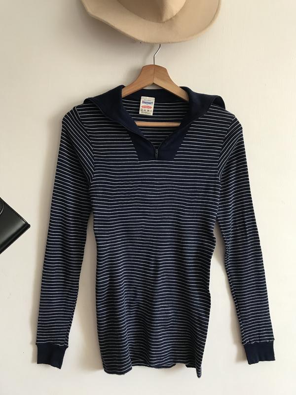 🔥 Синий полосатый термо зип лонг Damart Размер указан 2 скорее С/М Стан замечательный Плечи 36 рукав 62 ширина 30-65 Длина 85 85%termolactyl