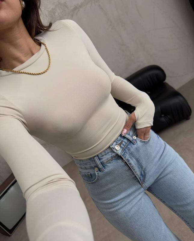 🔝Базовий лонг😁 🙌Актуальні кольори🙌 - чорний, білий, барбі, шоколад, беж, блакитний, мʼята ➡️Мод. 1295 ➡️Тканина: мікродайвінг (Туреччина) ➡️Розмір: 42-46 (тканина стрейчова, дуже гарно тягнеться) Приталений лонгслів - підкреслить переваги фігури✌️ Довжина 55см