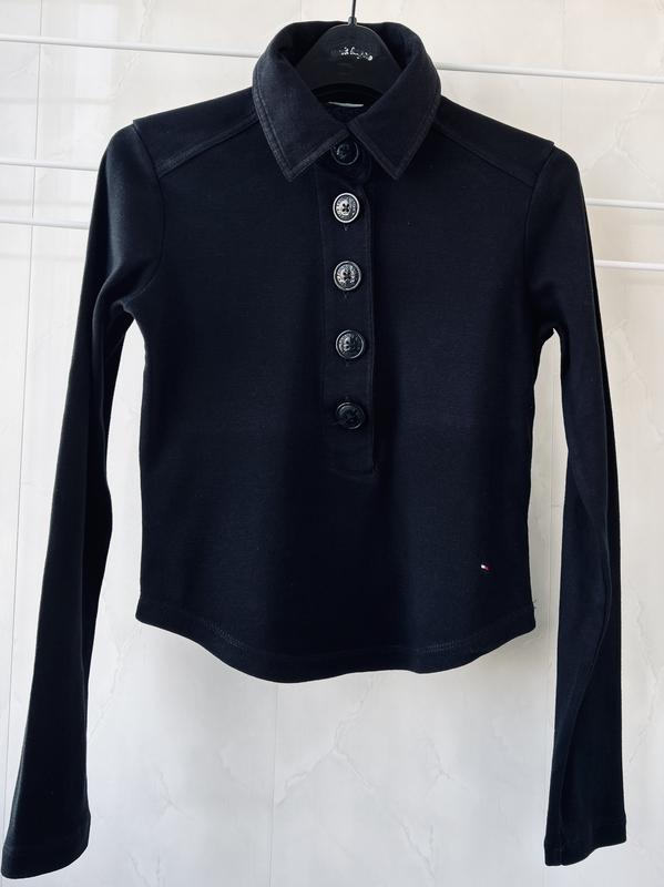 Лонгслів Tommy Hilfiger, оригінал, укорочений, ширина плечей 38 см; напівобхват грудей 43 см; довжина рукава 59 см; довжина 49,5 см , ширина знизу 40 см