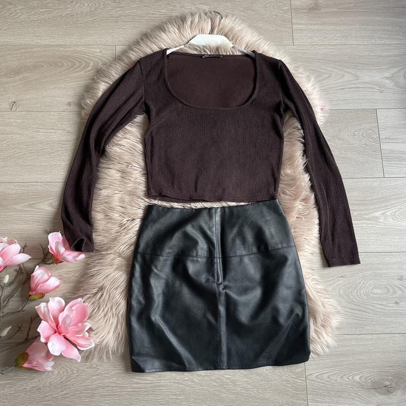 Интересная базовая кофточка Размер s Стан - идеальный Тянеться Замеры в спокойном состоянии Длина - 41 см ПОГ 40 см Рукав - 59 см