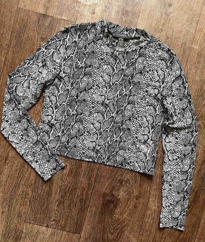 Кроп кофточка, лонгслив, полупрозрачная, с принтом, фирмы Primark, размер М, длина 46 см, полуобхват груди 44 см, длина рукава 61 см