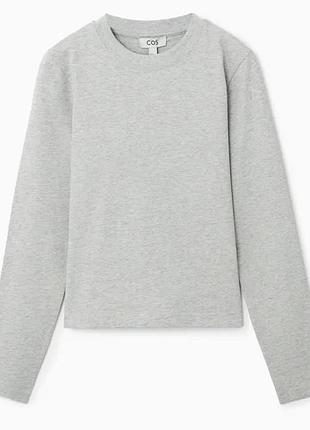 Світло-сірий лонгслів від cos . Укорочена модель , полотна тканина