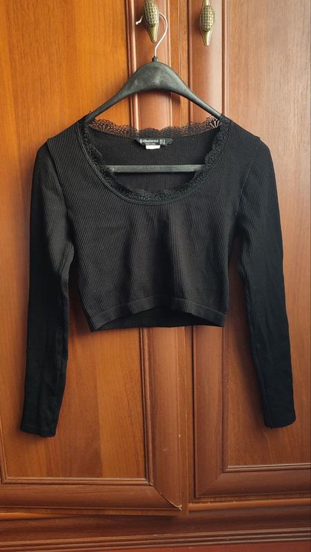 Укороченная кофта, лонгслив Stradivarius с кружевом в зоне воротничка Ткань плотный рубчик, ложится по фигуре Однозначно красивая и базовая вещь в гардеробе) Размер S, может быть XS