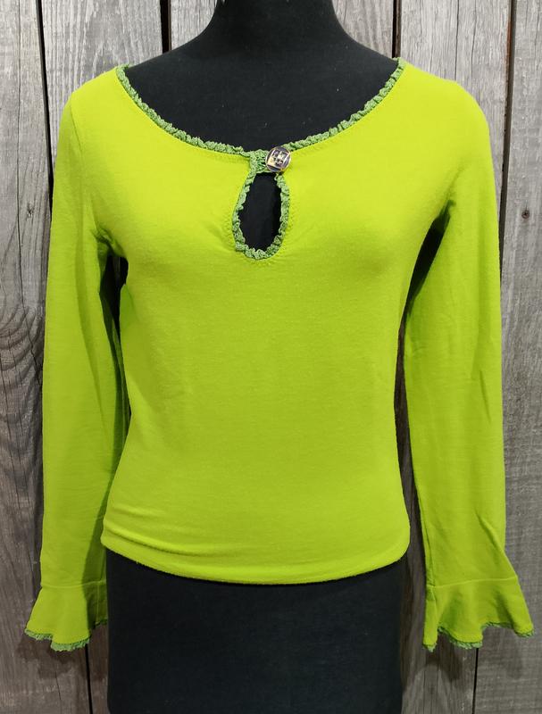 полушерстяная кофточка на ощупь в виде трикотаж. яркий цвет. состояние близок к идеалу. интересная пуговица и кружево. размер на С идеально.,