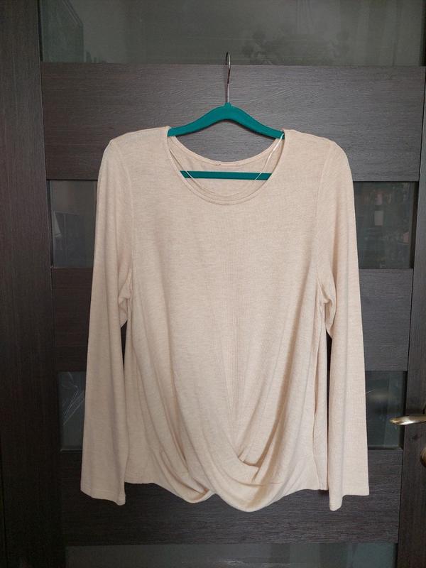 Дуже приємне трикотажна тканина. Бірка зрізана, але на другій вказано фірму. Розмір 14- 16. Купувала в стоці собі, але ,нажаль, поправилась. Не одягала. Довжина 63 см. Пог 54 см Пот 52 см Рукав довжина 65 см Біцепс по 17.5 см