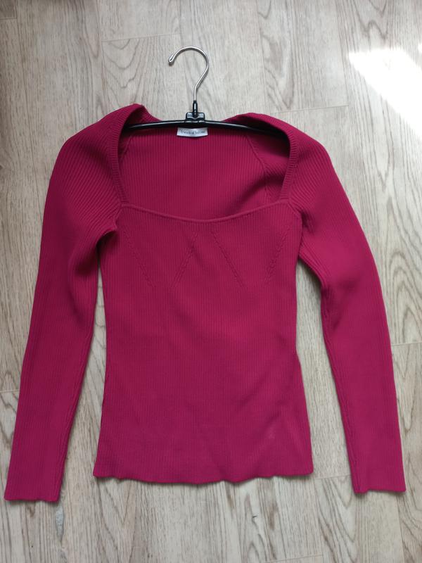 кофта с квадратным вырезом, красиво подчеркивает фигуру.