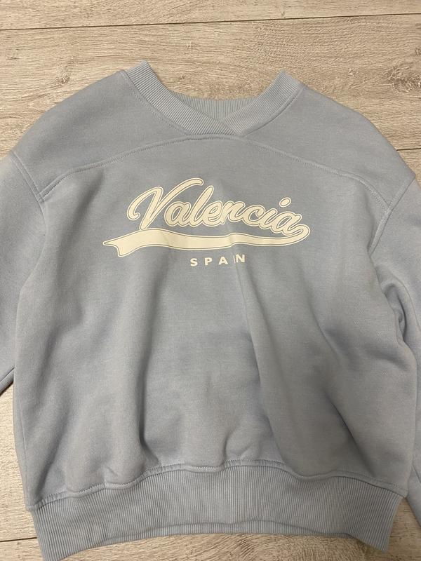 Женская голубая кофточка с белой надписью «Valencia. Spain» розміру xs H&M В жизни чуть светлее, чем на фото