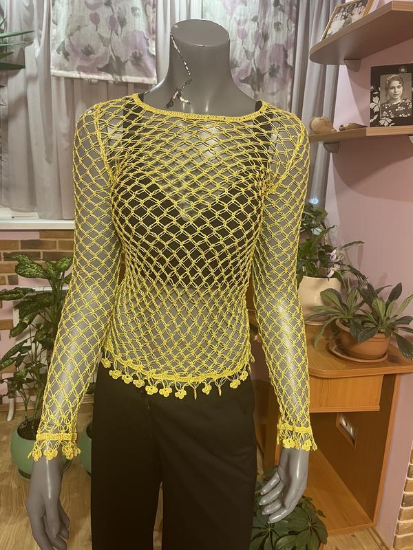 Плетеный лонгслив, нить с люрексом, стильная вещь, которую можно носить с любым бюстом или кроп-топом. Бірка не збереглася. Подойдет на S и небольшую М