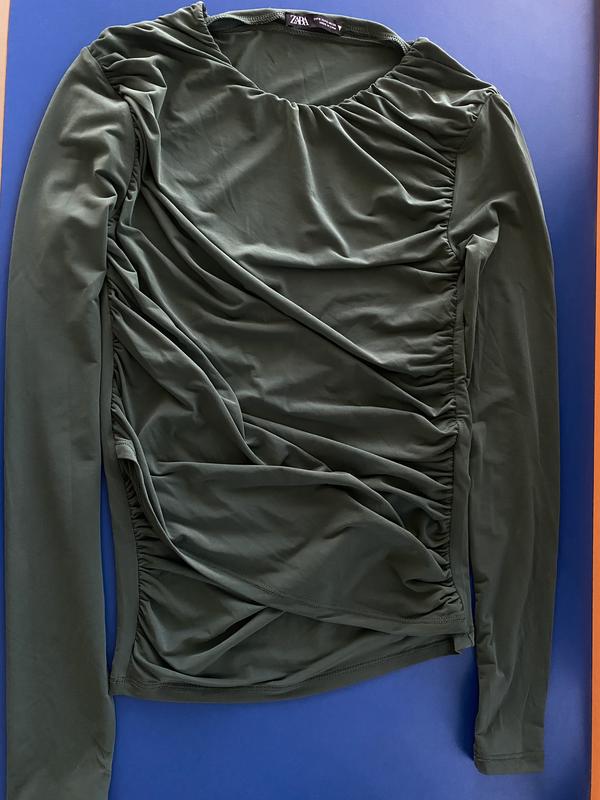 Красивый лонг от Zara в бутилковом цвете, спереди красиво стягивается, спереди асимметричная, тоненькая приятная к телу ткань