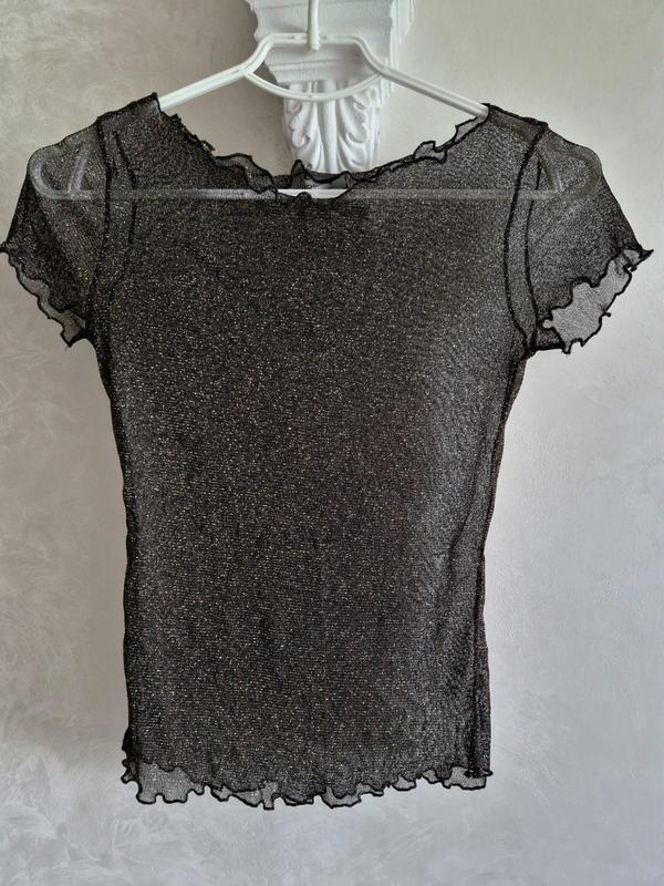 Прозрачный лонгслив черный с золотым люрексом Chiquelle, мягкий, тянущийся, не колеблется. Размер S. Стан - идеальный. Замеры: Подмышками 42 Плечи 40 Длина 56 Отправлю безопасной доставкой, если новой только после платья по минимальной предоплате
