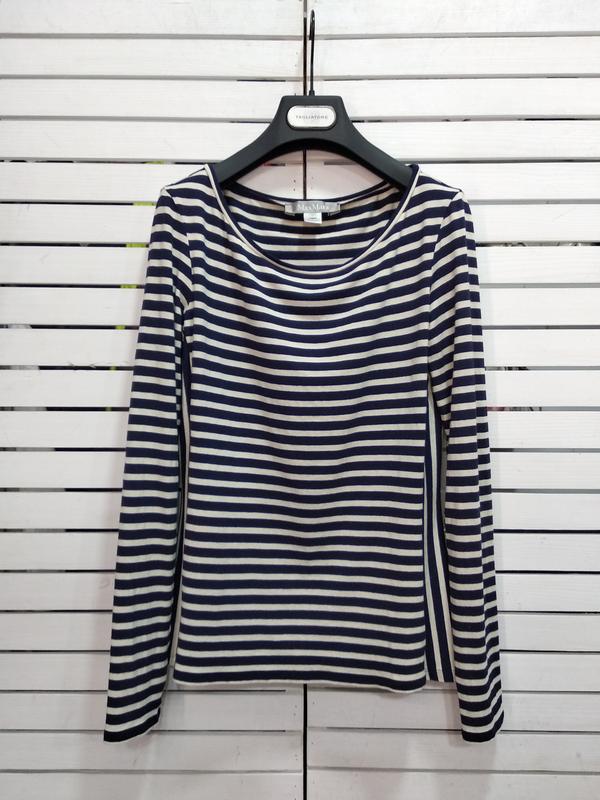 Size : S . 1-ая линия . Отличное состояние ( не лето ). 96% вискоза + 4% эластан . Легко тянется во все стороны . Синий+белый. - под руками 42*2 - талия 35*2 - длина изделия 55 - рукав 60 - по плечам 39,5