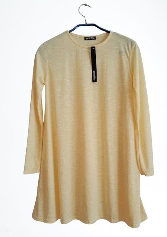 Лонгслив туника от английского бренда Graffic. Ткань меланжевая, мягкая, тянется. (8322) Размер: S/М Полуобхват груди: 46 см, тянется до 65 см Полуобхват талии: 54 см, тянется до 72 см Полуобхват бедер: 65 см, тянется до 80 см Ширина проймы: 21 см Ширина плечей: 39 см Длина рукава: 57 см Длина изделия: 81 см Состав: 95% полиэстер, 5% эластан
