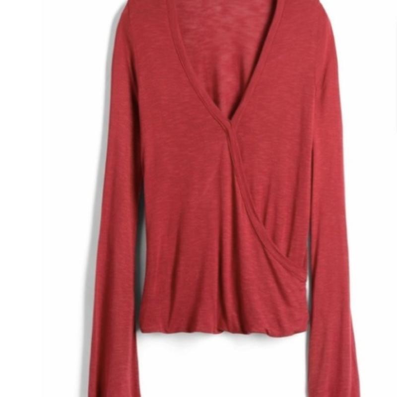 Лонгслив от американского бренда Papermoon. Модель на запах. Рукава внизу расширены. Ткань мягкая и приятная на ощупь, тянется. Сток, без бирок. (4334) Размер: М Полуобхват груди: 44 см Полуобхват талии: 41 см Полуобхват бедер: 51 см Ширина проймы: 22,5 см Ширина плечей: 40 см Длина рукава: 70 см Длина изделия: 60 см Состав: 100% район (шелковистая вискоза)