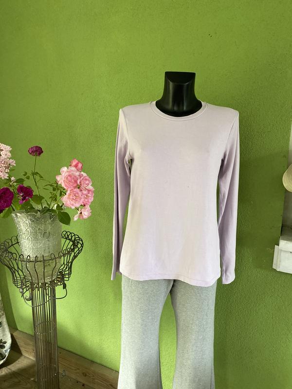 Качественный лонгслив нежно-сиреневого цвета от Uniqlo. Cклад:коттон/эластан(96/4). Размер по набору-S. Замеры:длина-61 см, ПОГ-44 см, ПОБ-48 см, рукав-62 см.