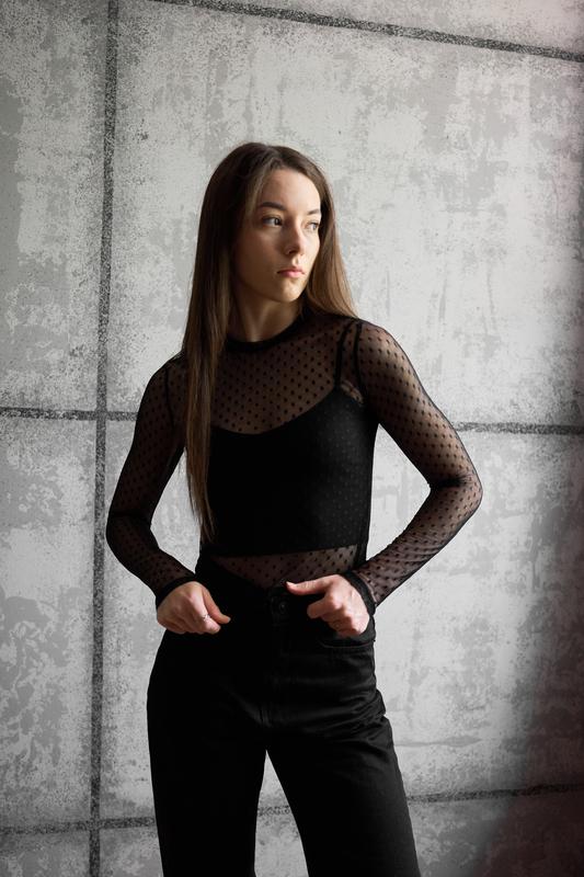 Лонгслив из сеточки в горошек