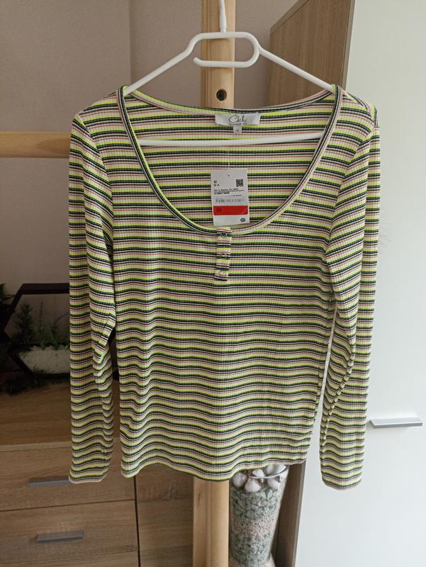 Яркий реглан/лонгслив в полоску C&A. Состав: 66% вискоза, 31% полиэстер, 3% эластан. Идет в размер, везде тянется +30см. Замеры:📌 Размер XS: ПОГ 34см, плечи 31см, рукав 57см, длина 56см. Размер S: ПОГ 35.5см, плечи 32.5см, рукав 59см, длина 58см Размер M: ПОГ 38см, плечи 32.5см, рукав 59см, длина 58см Размер L: ПОГ 39см, плечи 34.5см, рукав 59.5см, длина 58см Размер XL: ПОГ 44см, плечи 38см, рукав 61.5см, длина 60см