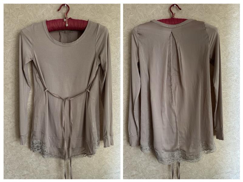 красивый лонгслив,спинка шелк,остальное модал,состояние нового,пог 45см,плечи 33см,длина рукава 62см,длина сзади 68см,спереди на 10см короче
