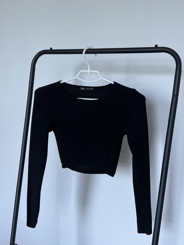 Топ ZARA черного цвета, очень красиво сидит на теле Длина топа: 35 см Ширина: 29 см Длина рукава: 60 см Ткань очень хорошо тянется