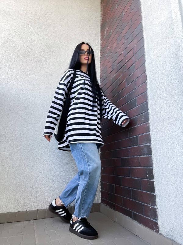 4943- 266 Тельняшка свободного кроя🤍 Ткань: кулир ( Турция ) Размер: 42-48 (универсал) Цвет: черно-белый 📸Реал фото 📨Для заказа писать