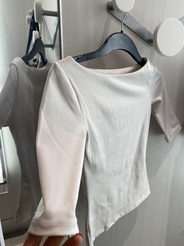 Цена 1120 Лонгслив Приталенный топ из толстого трикотажа с вырезом лодочкой и короткими рукавами. Верх на подкладке. Артикул: 1239450003 HM