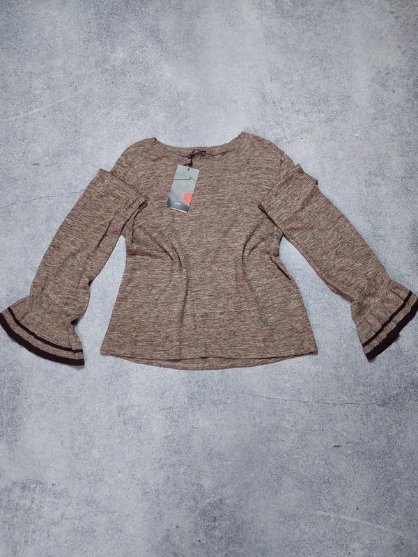 Лонгслив Zara✨️ Рукав длинный, внизу клеш. Полоски на рукаве коричневые.