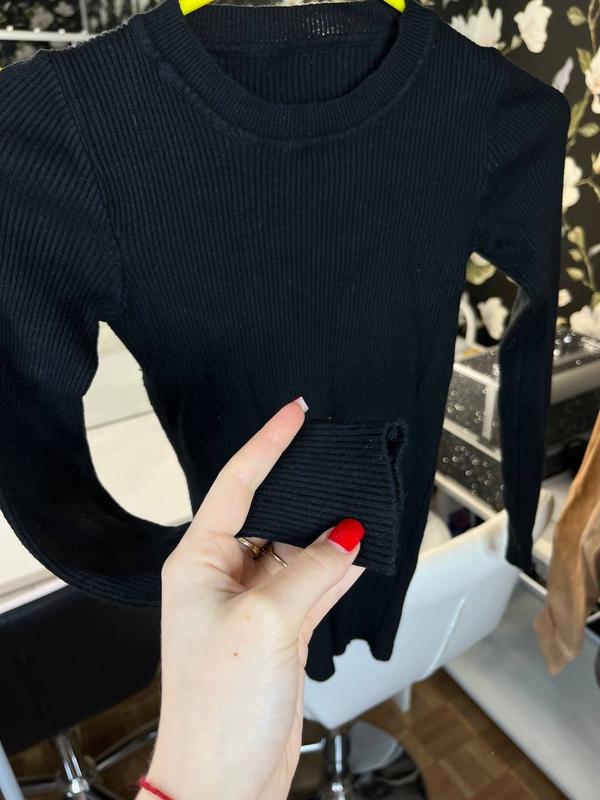 Черная кофта в рубчик Без дефектов Новая Размер S-M Хорошо тянется От плеча к плечу 28 см От плеча к низу 50 см Подмышками 25 см От плеча рукав 50 см