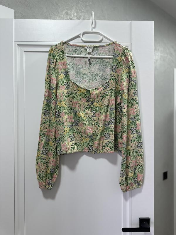 Дуже мила котонова кофтинка в квітковий принт, натуральна приємна тканина, широкий гарний рукавчик, спереду декоративні ґудзики, розмір М, нова