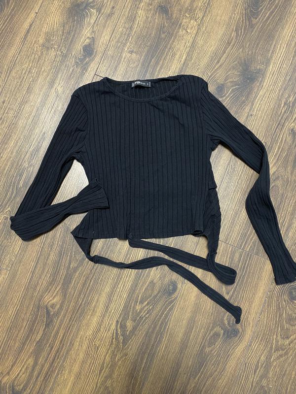 Женский топ в рубчик на длинный рукав с завязками на спине