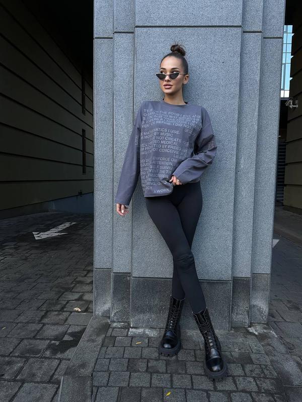 💜Лонгслів з накатом 💸Ціна: 1000 грн 💎Мод : 802 🪡Тканина: турецький кулір (100% хлопок ) з якісним накатом 📏Розмір: 42-46 оверсайз 🌈Колір: рожевий, графіт