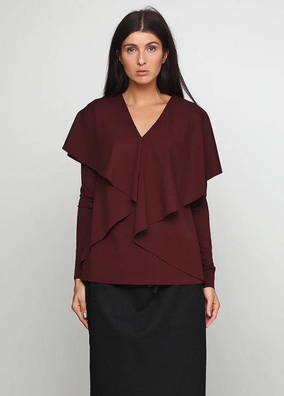 Размер л, оверсайз, тянется 78% лиоцелл, 19% полиамид, 3% эластан блуза асимметричного кроя, с длинным рукавом. Выполнена из эластичного трикотажа с необработанными краями.