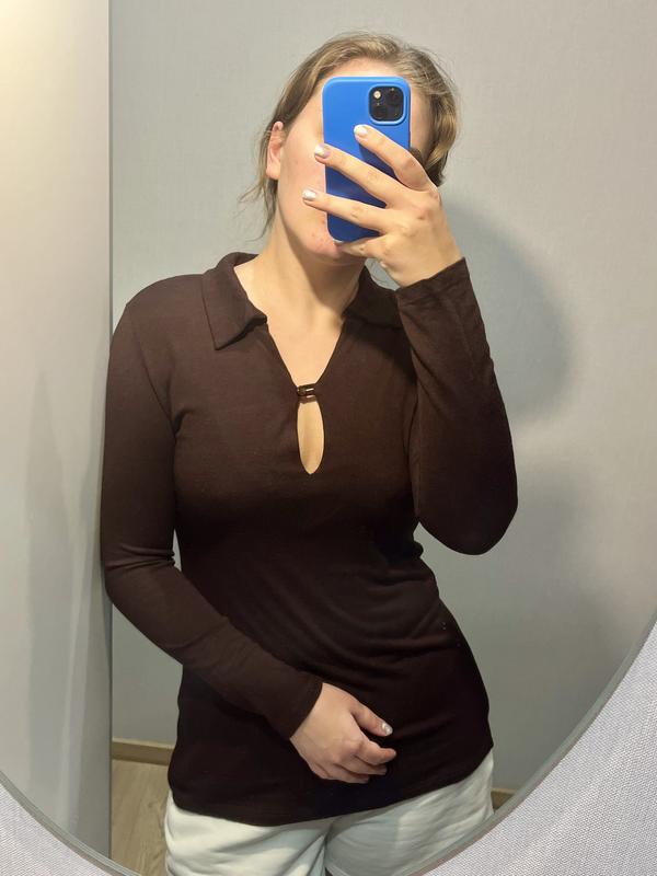 коричневий приталений лонгслів з вирізом. підійде на м/л. довжина 73, рукав 66, пог 43. ідеальний стан