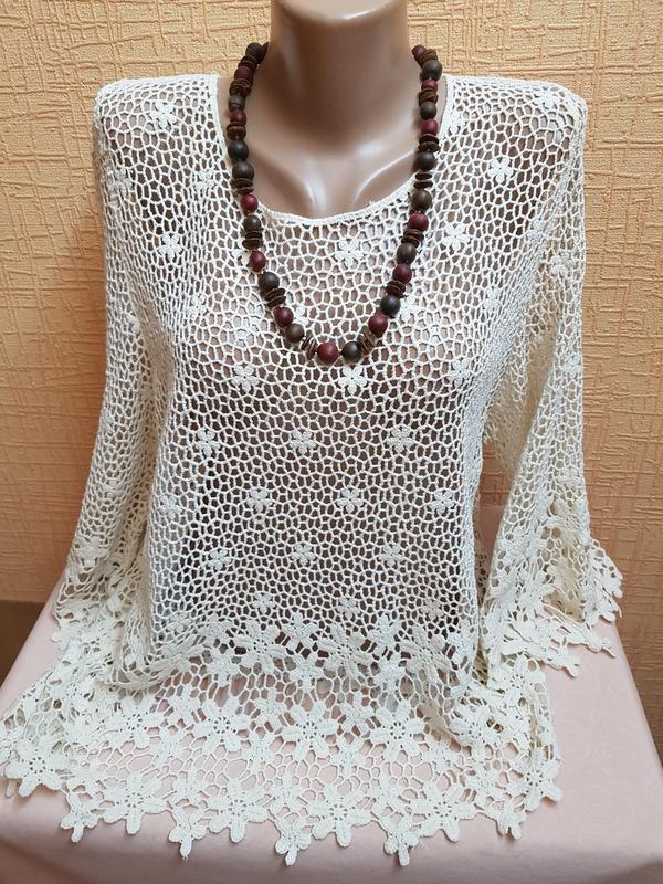 Очень красивая, ажурная кофточка. Замеры:ПП (плечи)-41см,ПОГ-55 см,длина 65/73см.
